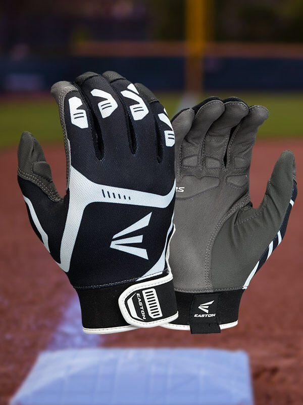 Easton’s Gametime VRS™ batting gloves feature a VRS™ palm pad for reduced vibration and blisters. These gloves feature a smooth goatskin palm and sublimated flexible four-way-stretch mesh back. A comfortable neoprene cuff offers durable and breathable support.
