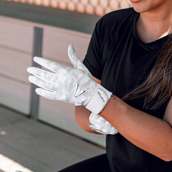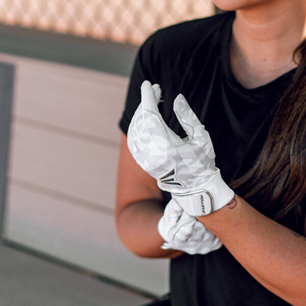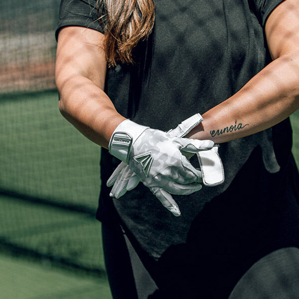 Woman Up! The LC Pro batting gloves were built in collaboration with Lauren Chamberlain, the all-time NCAA D1 career leader in home runs. These gloves are built with premium Cabretta sheepskin leather, and reinforced with a layer of digital leather across the palm for extra durability. The back of the glove combines a tonal- white camo Lycra®, fused with silicone for the perfect balance of flex and support. The extra-wide 1.5” elastic cuff is lined with white-tonal camo Bio-Dri™ material to absorb moisture and maximize comfort. Lauren’s signature gloves are embellished with a molded Easton Screamin’ E logo on the back of the hand and her LC logo on the pull tab sewn to the inside of the wrist.