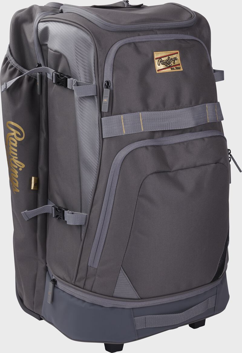 For catchers, coaches, or anyone with more gear than they know what to do with: your perfect bag has arrived. The Rawlings Gold Collection wheeled bag was designed to honor the luxury of the Rawlings Gold Collection and give ballplayers and coaches easy-to-use features that make life at the field easier.