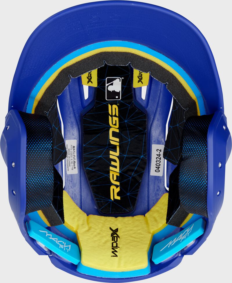 The mult-directional flex shell expands outwards when the helmet is placed on your head, always in tension to conform to your head shape. Because of this feature, this helmet comes in one size, as one size fits most. Furthermore, this Mach Fit Batting Helmet comes equipped with IMPAX foam technology, which absorbs and displaces the force while safely withstanding multiple impacts. For added comfort, this helmet sports a moisture-wicking liner with wrapped jaw pads.