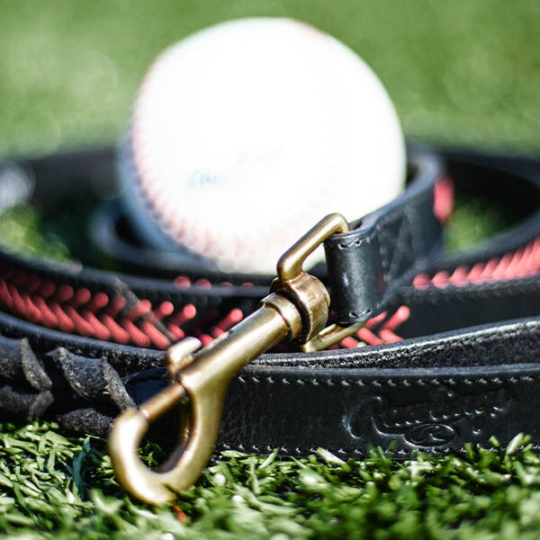The Rawlings baseball stitch premium leather dog leash is crafted from genuine leather and antique brass hardware for superior quality. In addition, it features a unique baseball stitch design, making it the ultimate accessory for any baseball fan's favorite companion. Also, its leather construction and braided handle combine for a durable leash you can turn to year after year, and park after park. Take your dog out to the ballgame, or around town, in style with the Rawlings leather dog leash — order yours now!