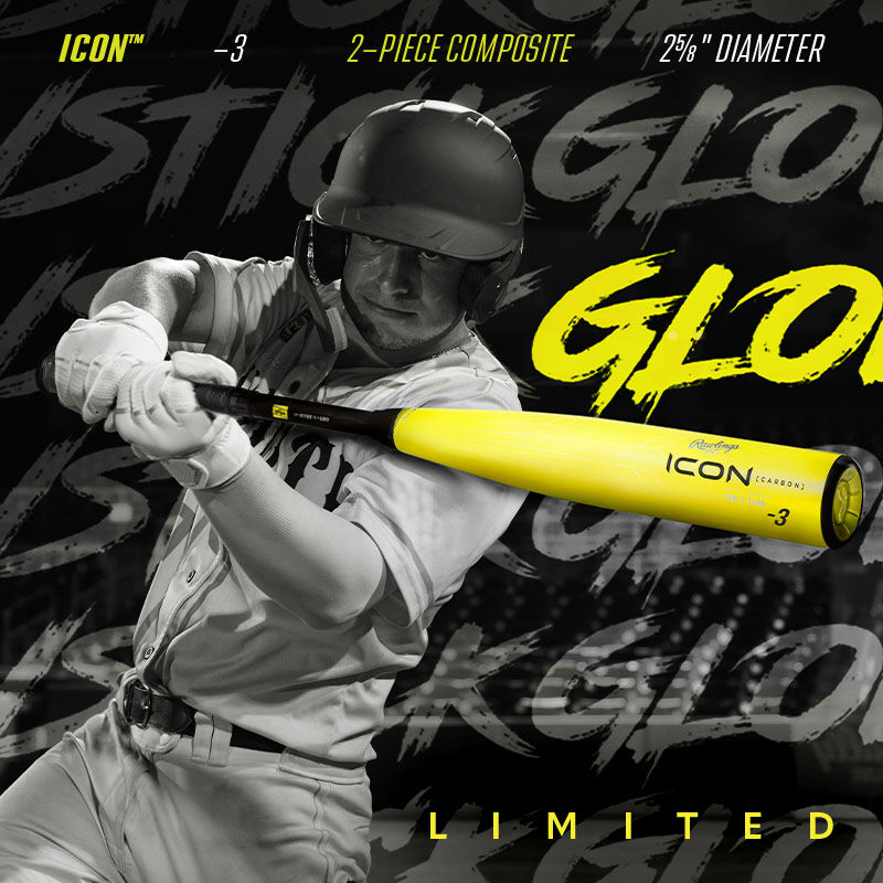 This limited-edition run of the Icon BBCOR -- ranked as the hottest composite BBCOR bat in the game -- pays homage to the 2017 Rawlings Quatro Pro, known as the "Glowstick" thanks to its highlighter-yellow design and ultra-hot exit velos.