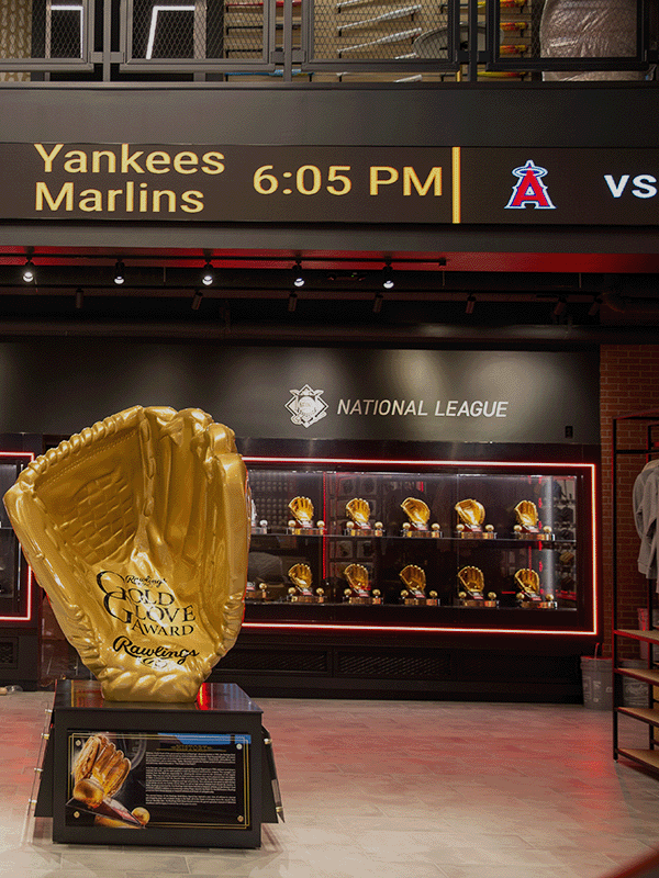 This special collection of artifacts and exclusive products is a must-see destination for anyone who appreciates the craftsmanship of glove-making at the highest level. The Glove Vault features current and historic Rawlings Gold Glove Awards® as well as the gameday glove designs of modern superstars and former pro legends like Brooks Robinson, Willie Mays, and Ozzie Smith. You can even get your picture taken with the giant Rawlings Gold Glove Award® statue!